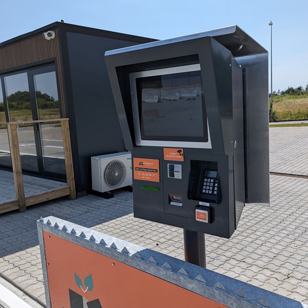Med en stor industrivægt tilsluttet Corduras betalingsautomat vejes kundens bil og trailer. Herefter pålæsses det ønskede materiale og kunden returnerer til automat/vægt, bliver igen vejet og betaler herefter med betalingskort eller tilknyttet erhvervskort.