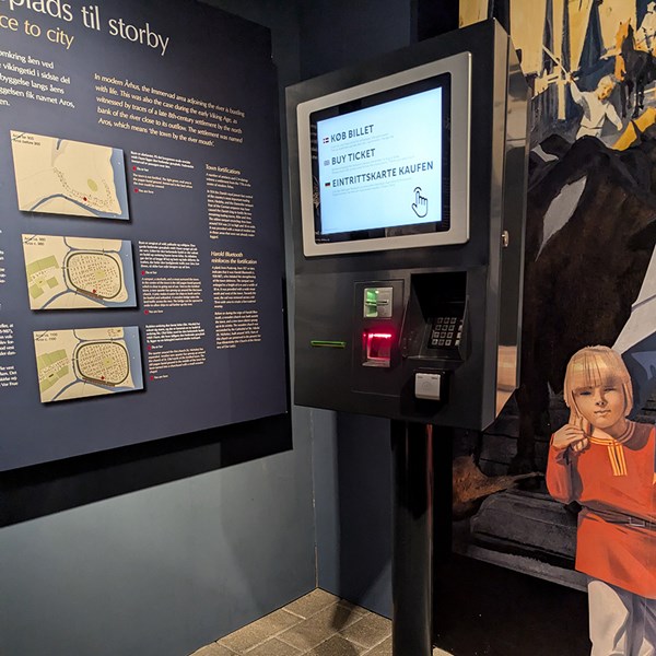 Built-in barcode scanner enables retrieval of pre-purchased tickets, etc.